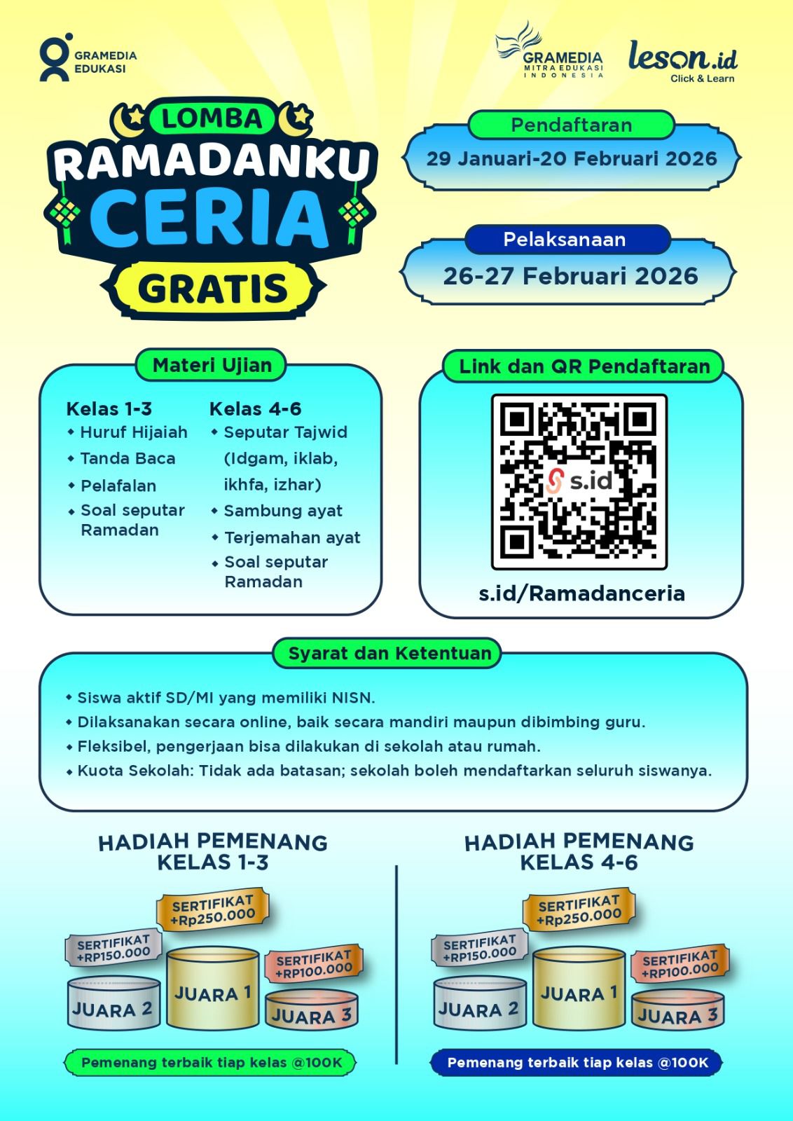 Ikuti Lomba Ramadanku Ceria dan asah kemampuan mengaji serta pemahaman Ramadan dengan cara yang menyenangkan 📖🕌